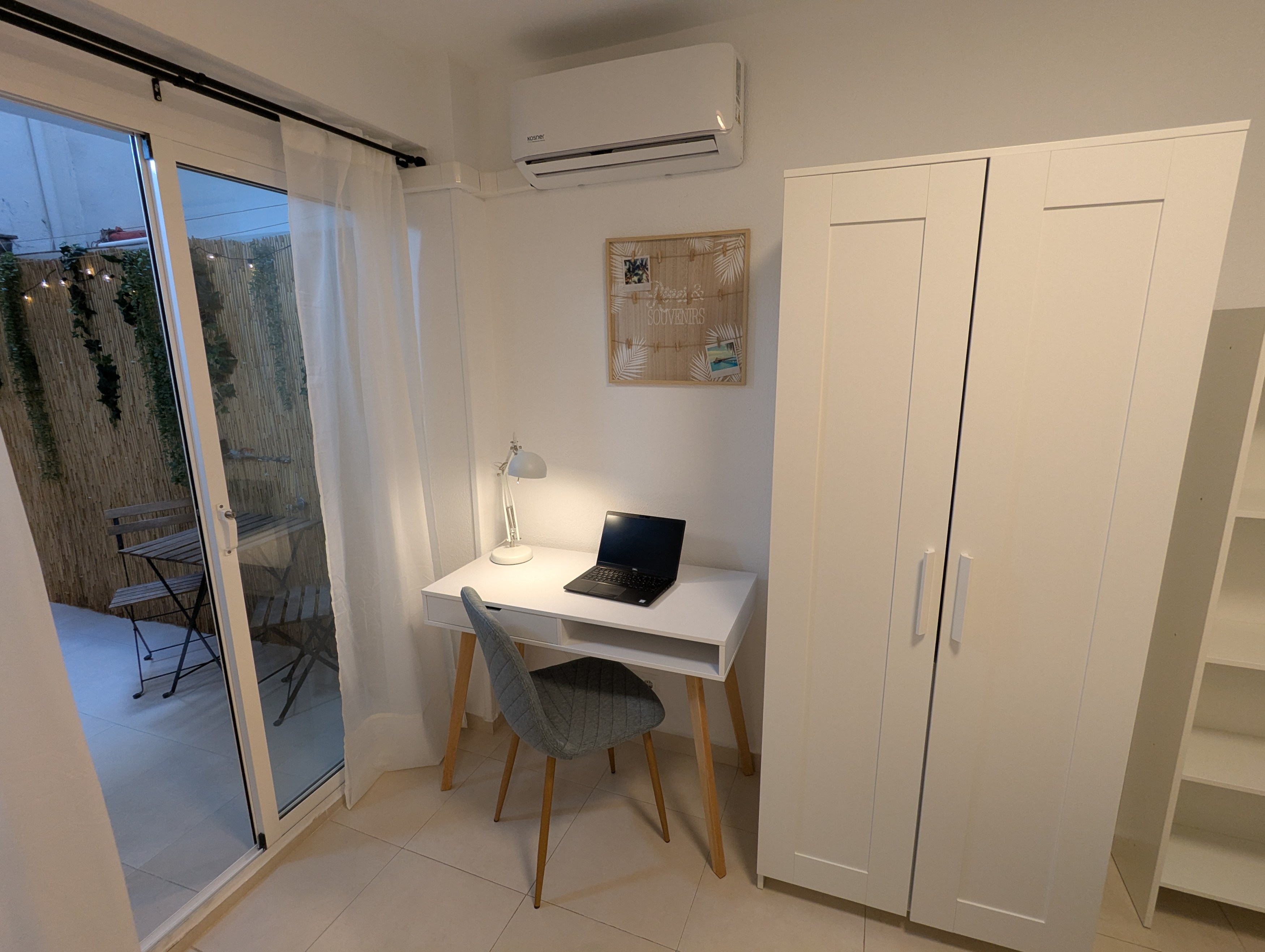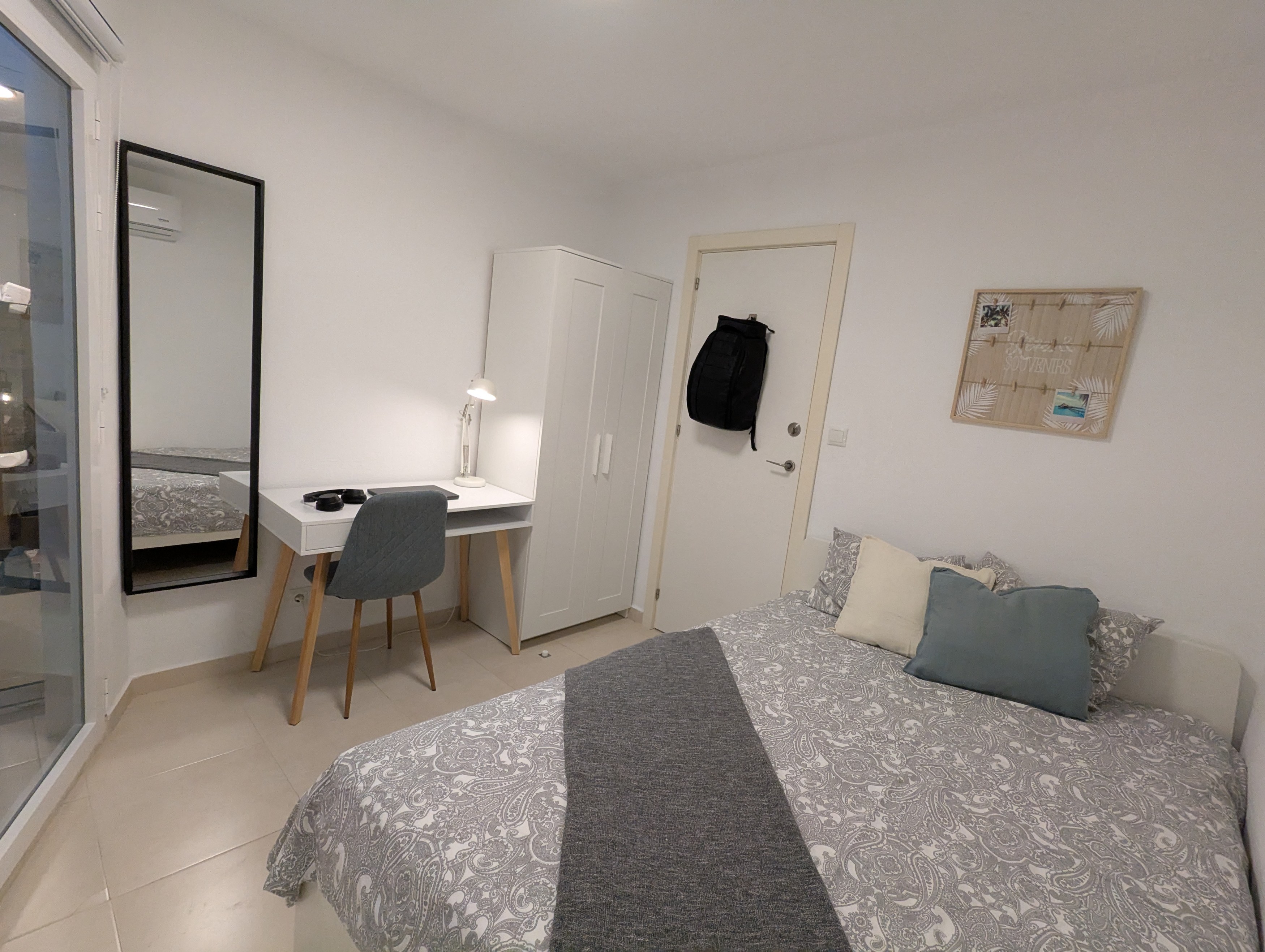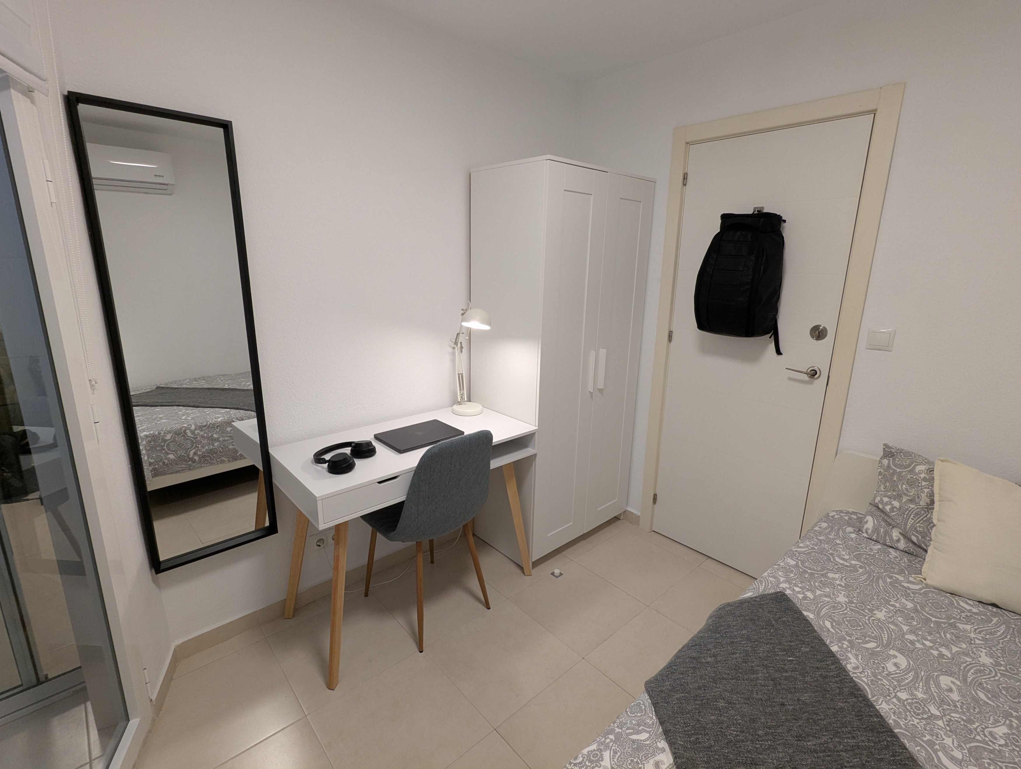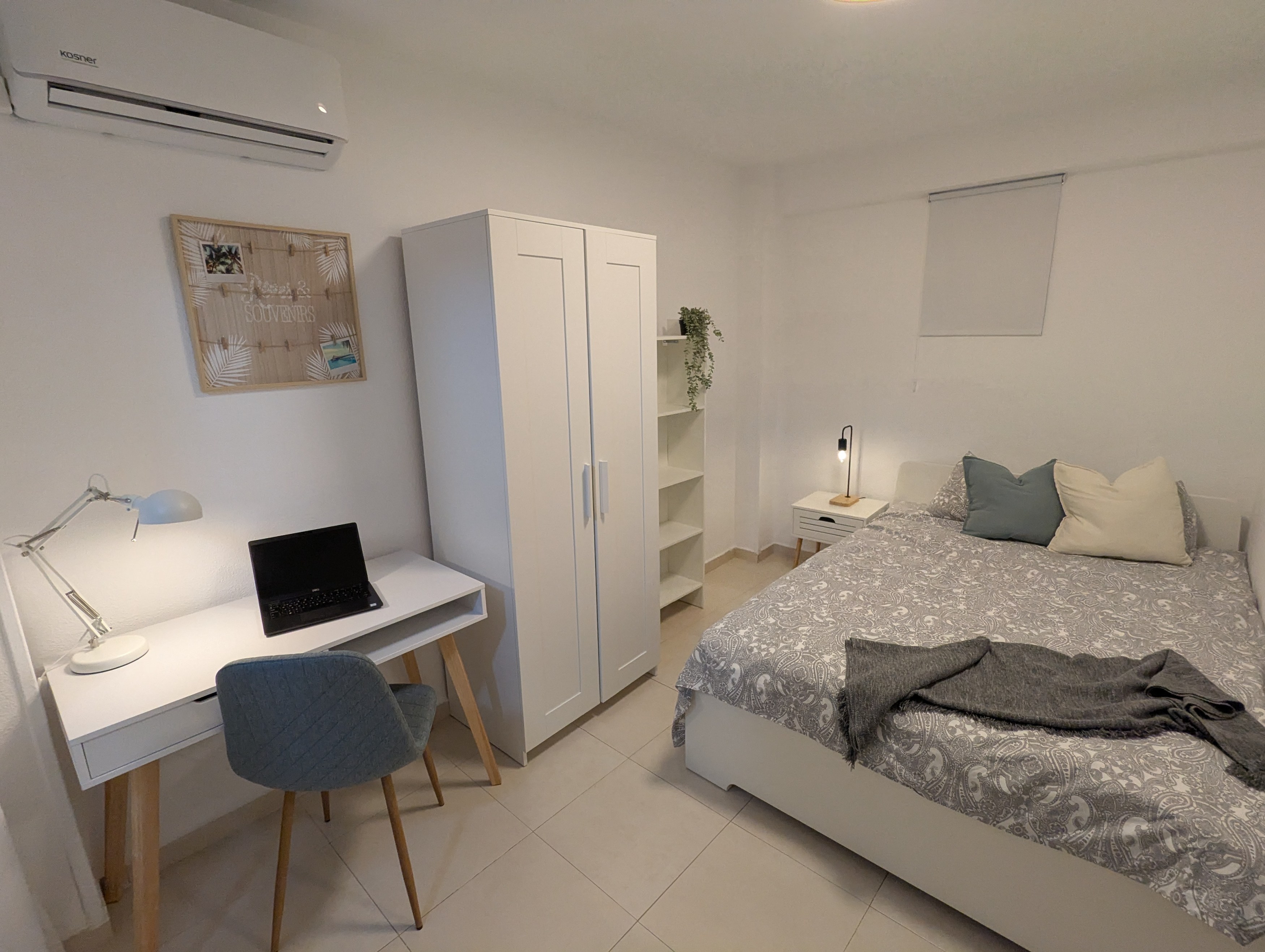 It´s got a comfy big bed, a work desk, a bedside table and a closet with plenty of space to store your clothes.