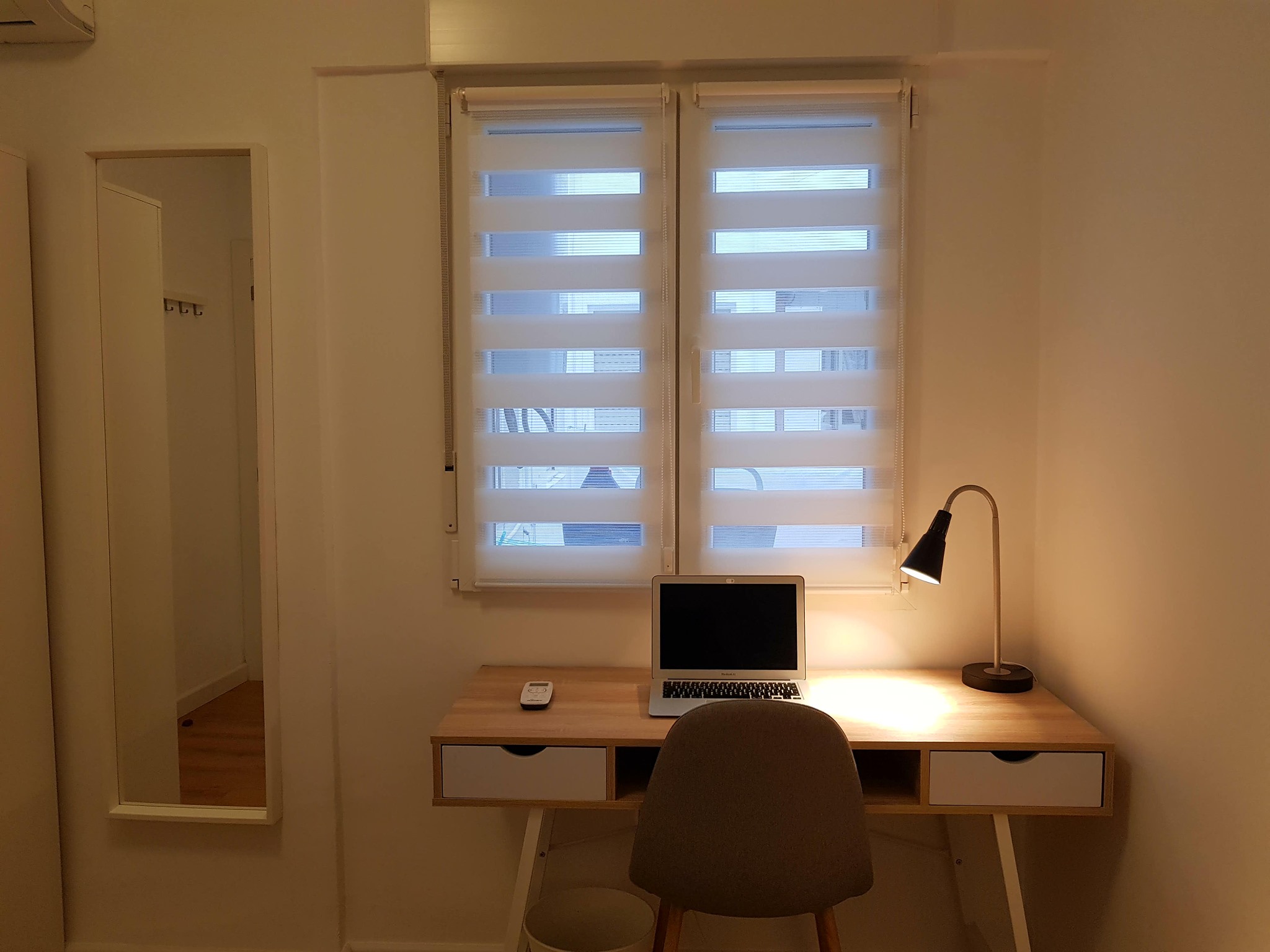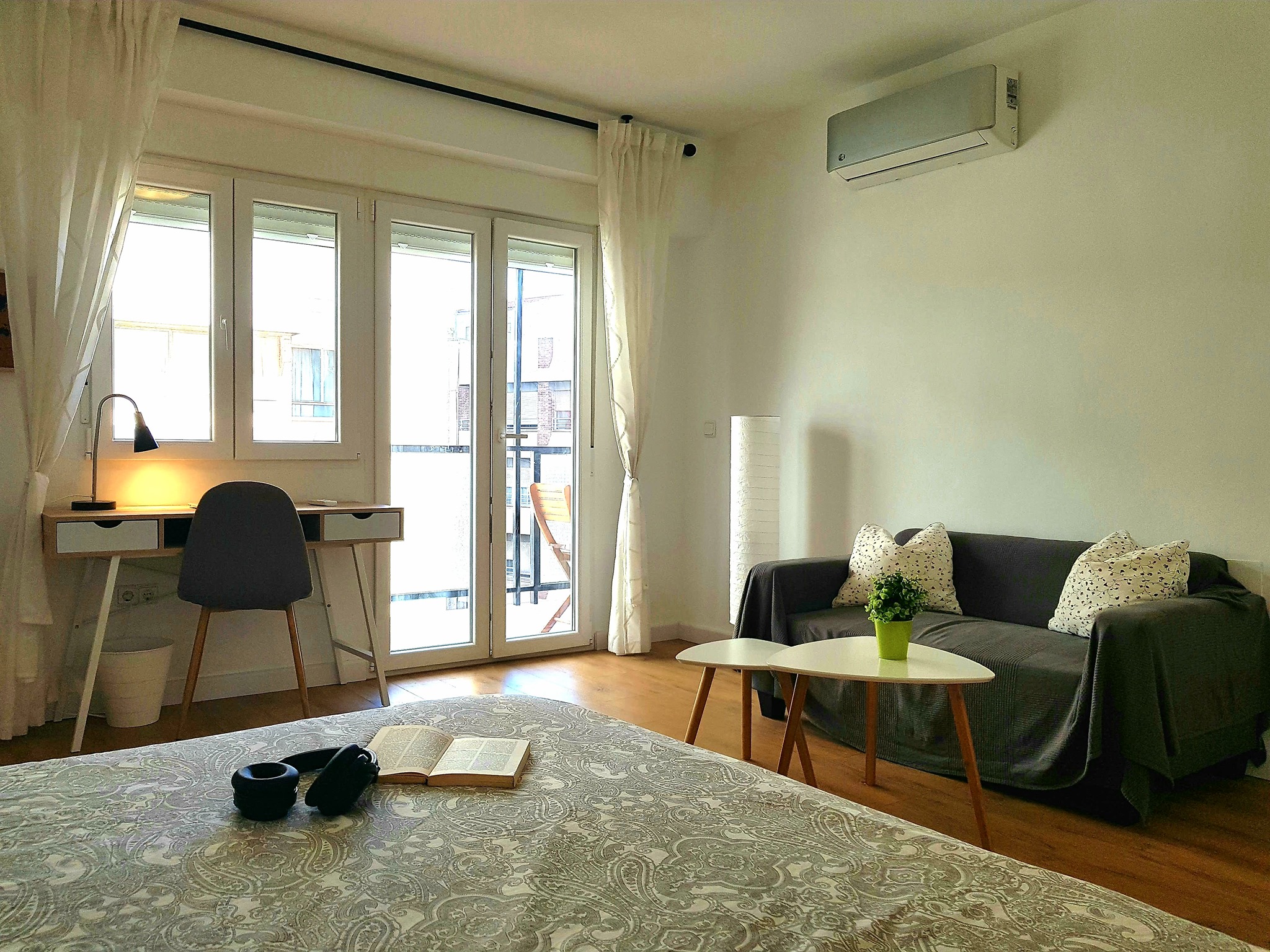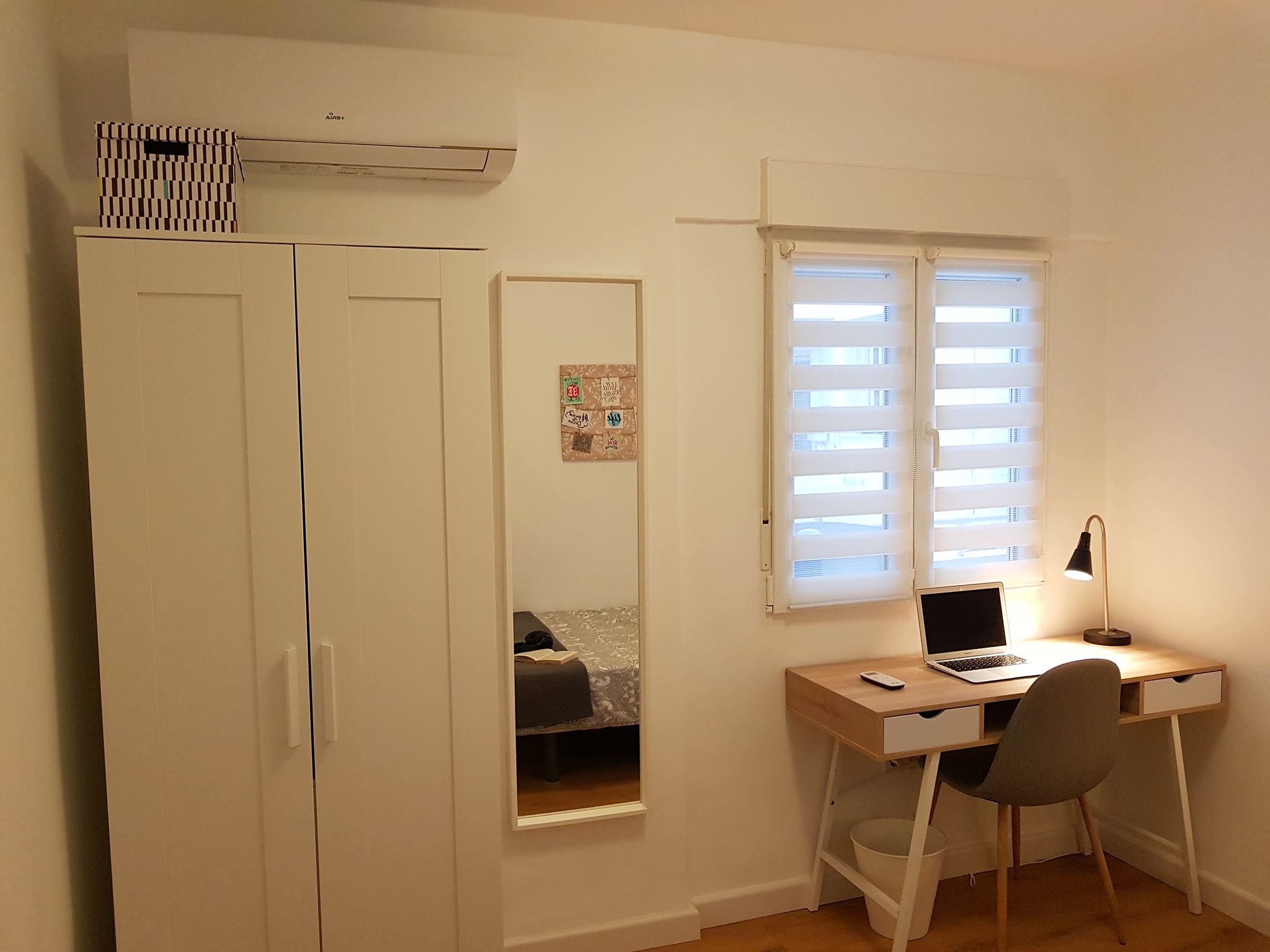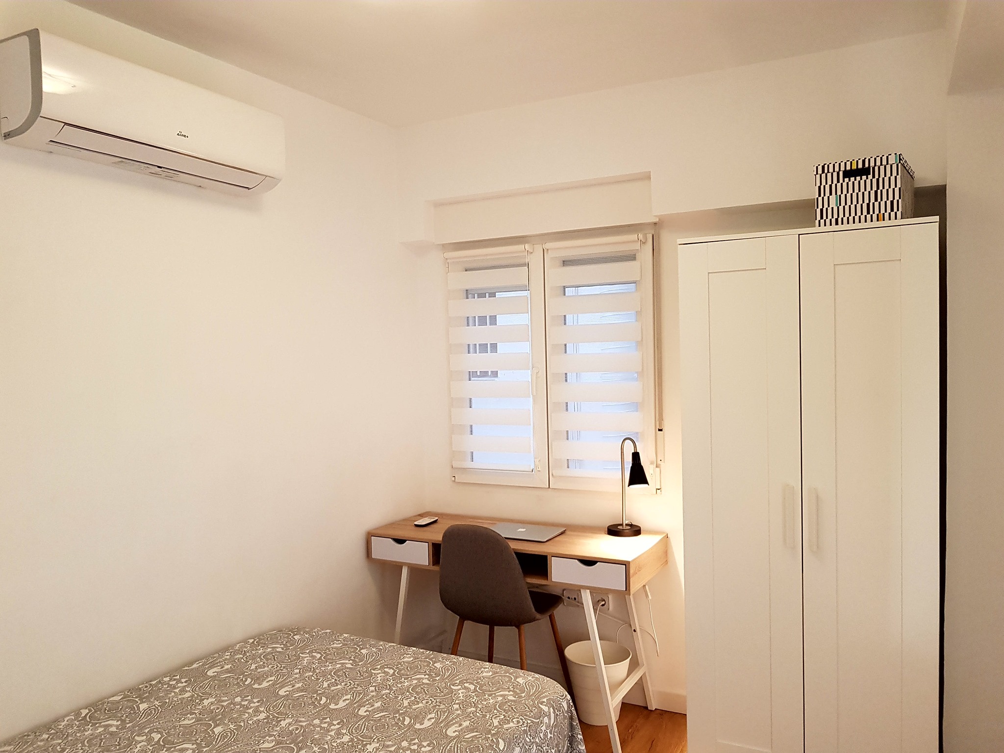 It´s got a comfy big bed, a chill-out sofa, a work desk, and plenty of space to store your clothes.