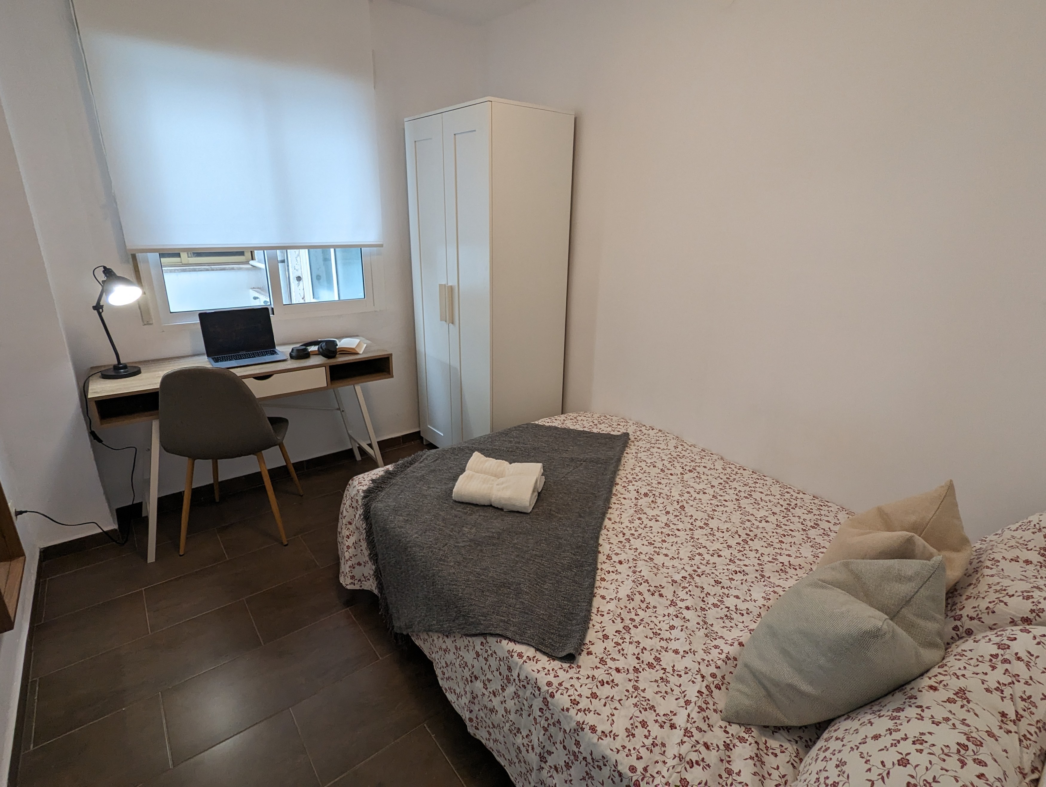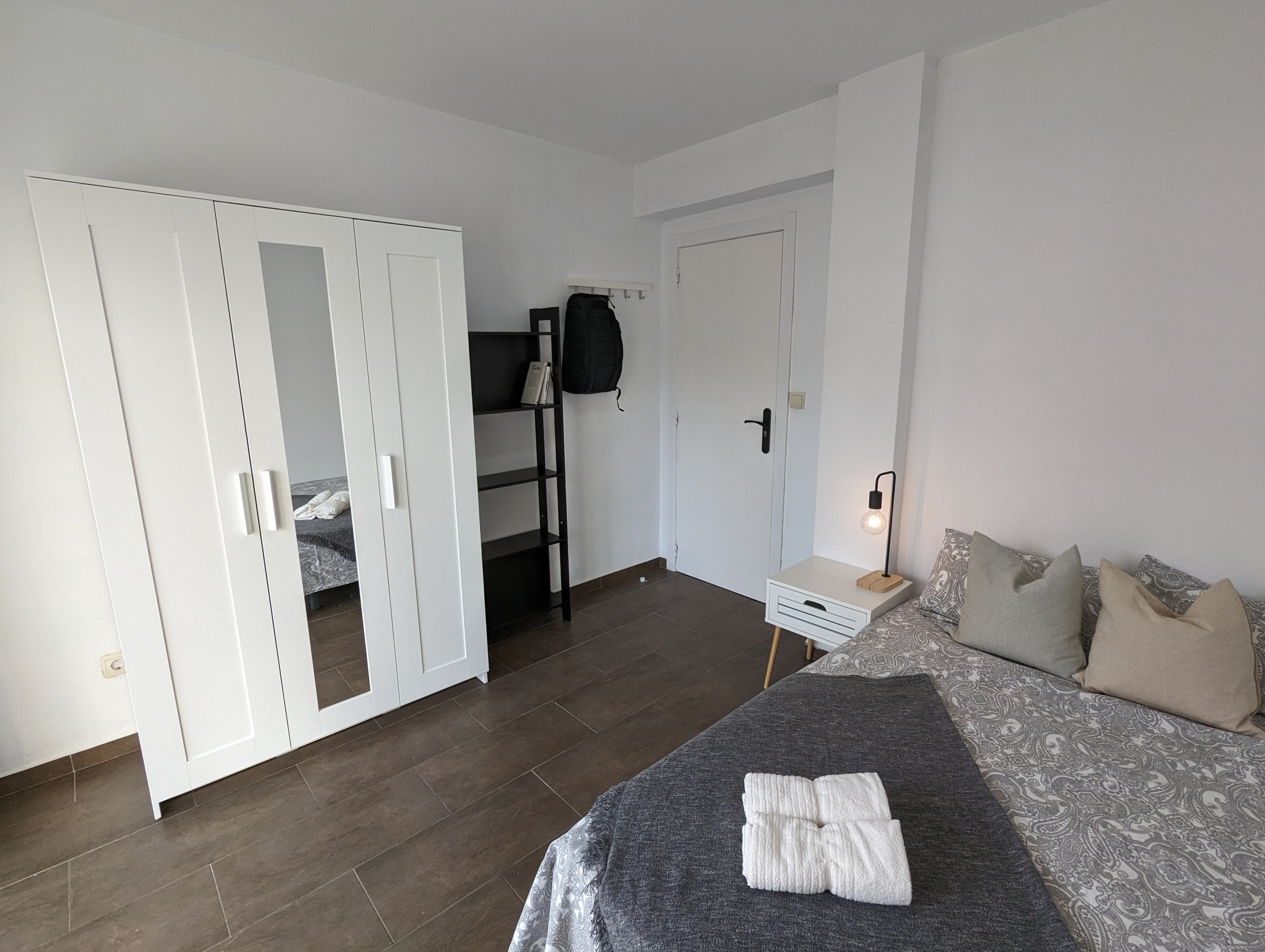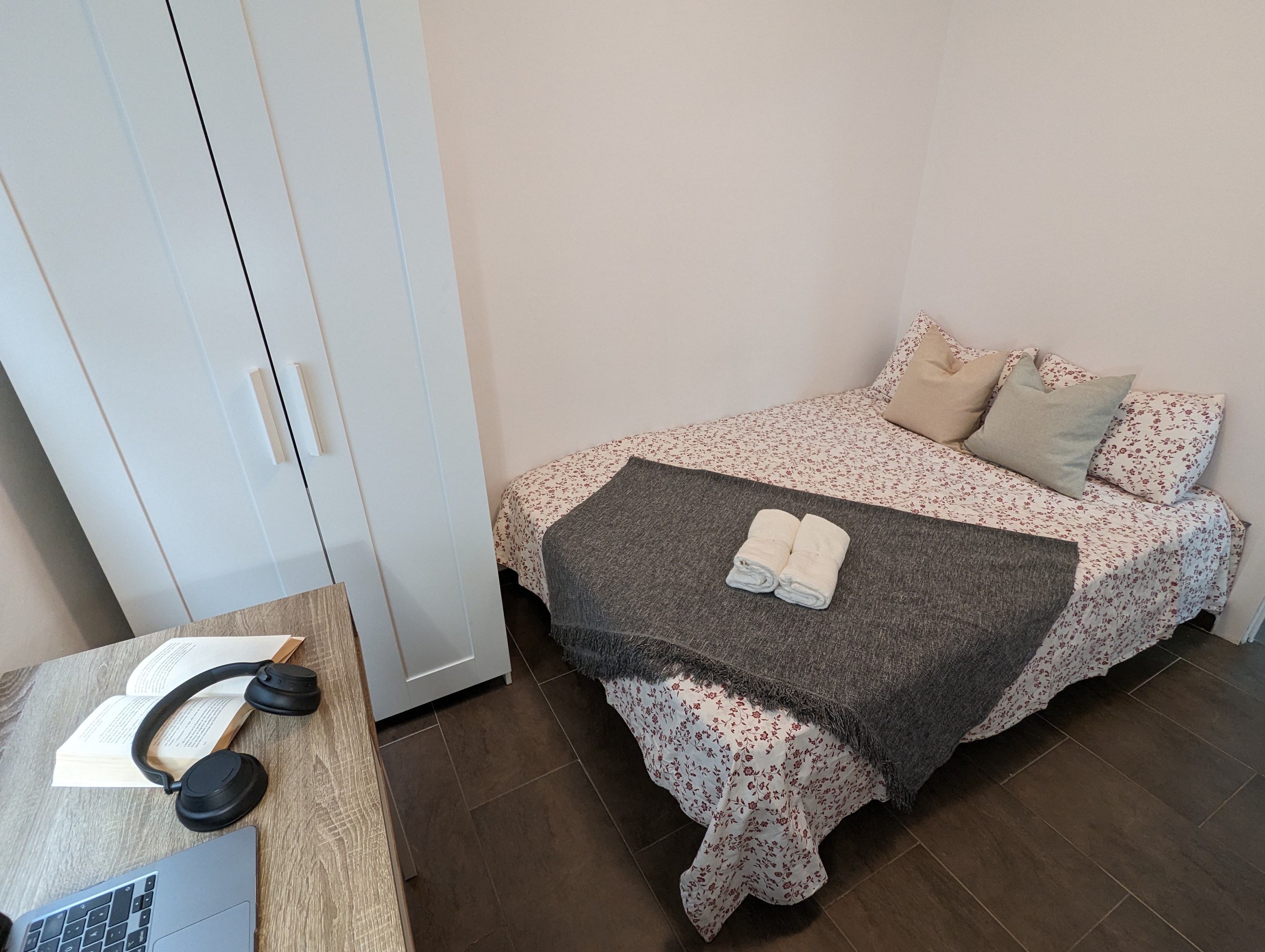 It´s got a large bed, a work desk, a bedside table and a closet with plenty of space to store your clothes.