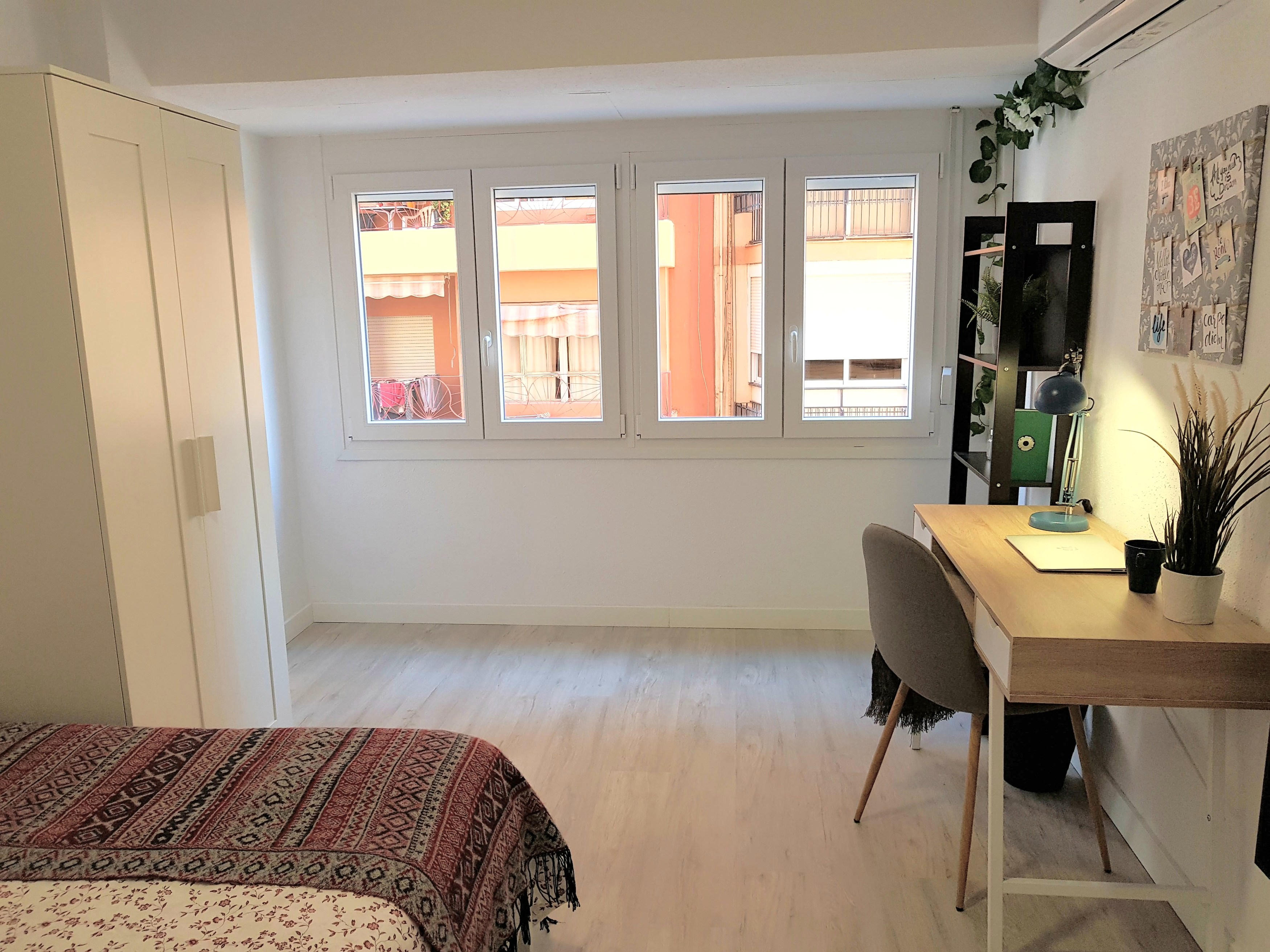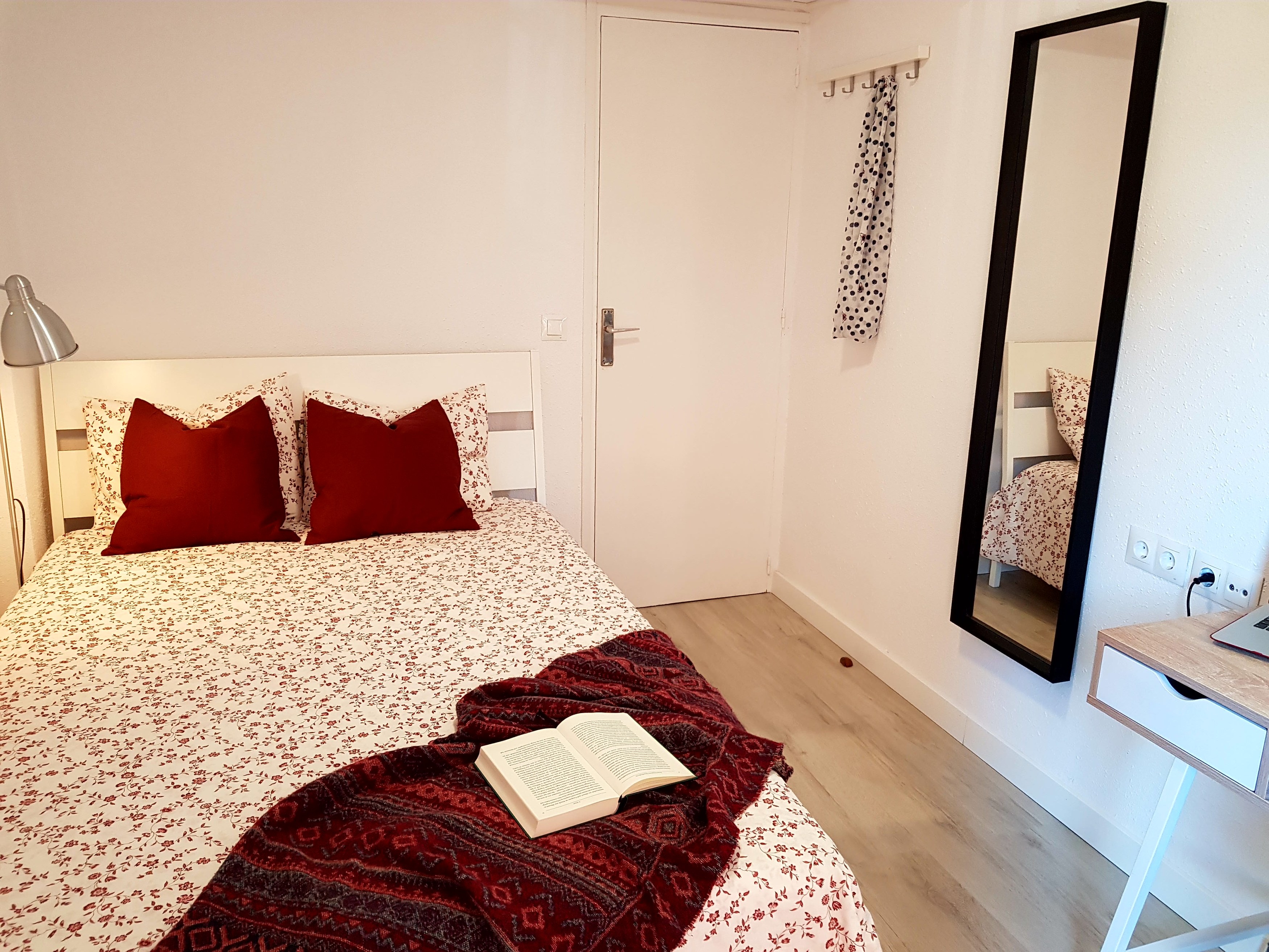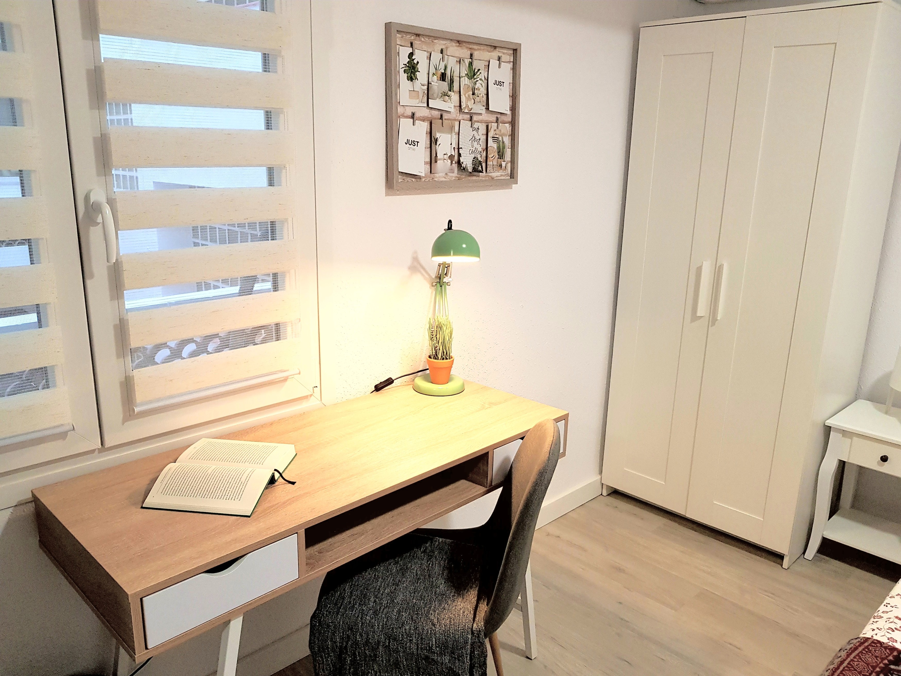 It´s got a comfy big bed, a work desk, a bedside table and a closet with plenty of space to store your clothes.